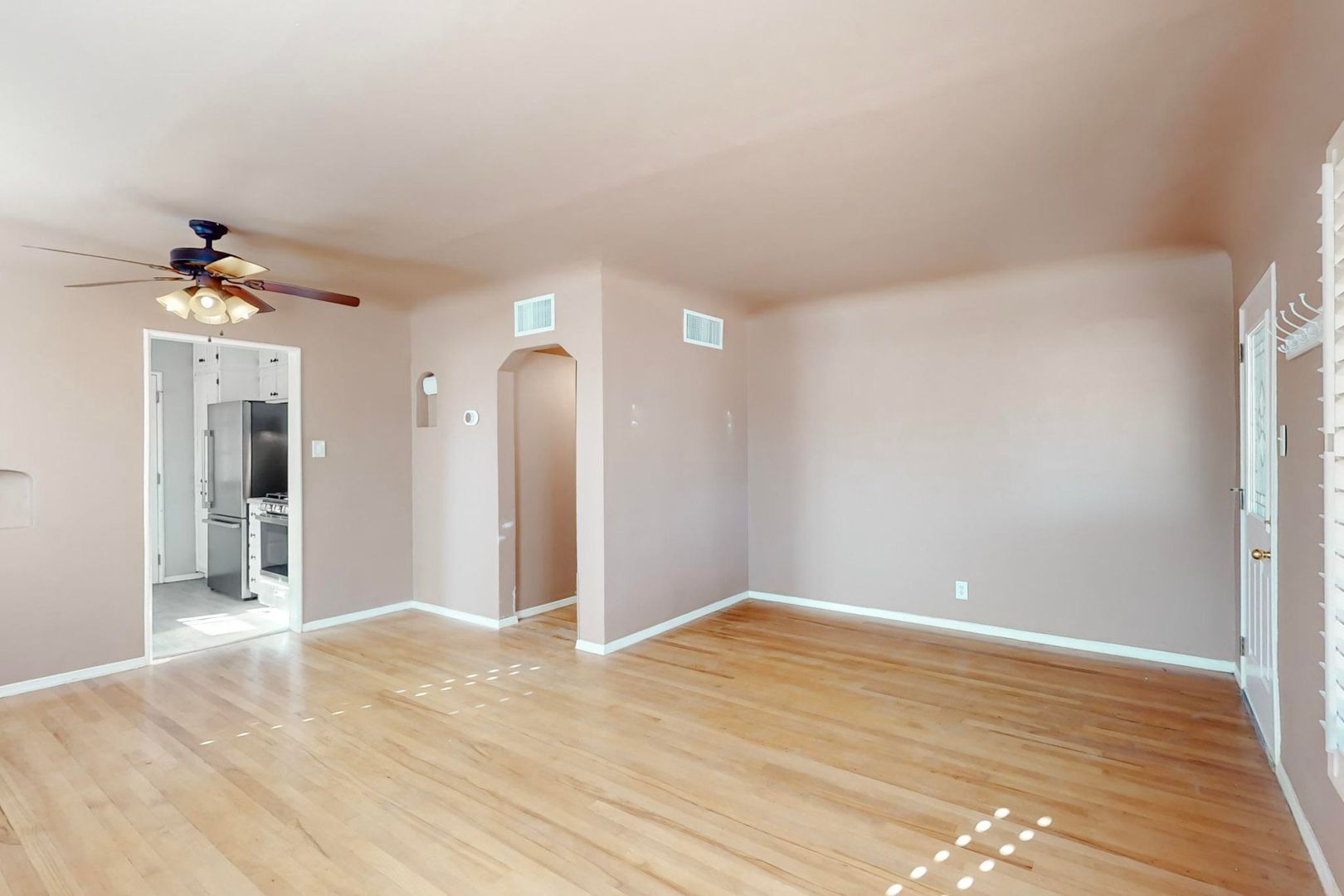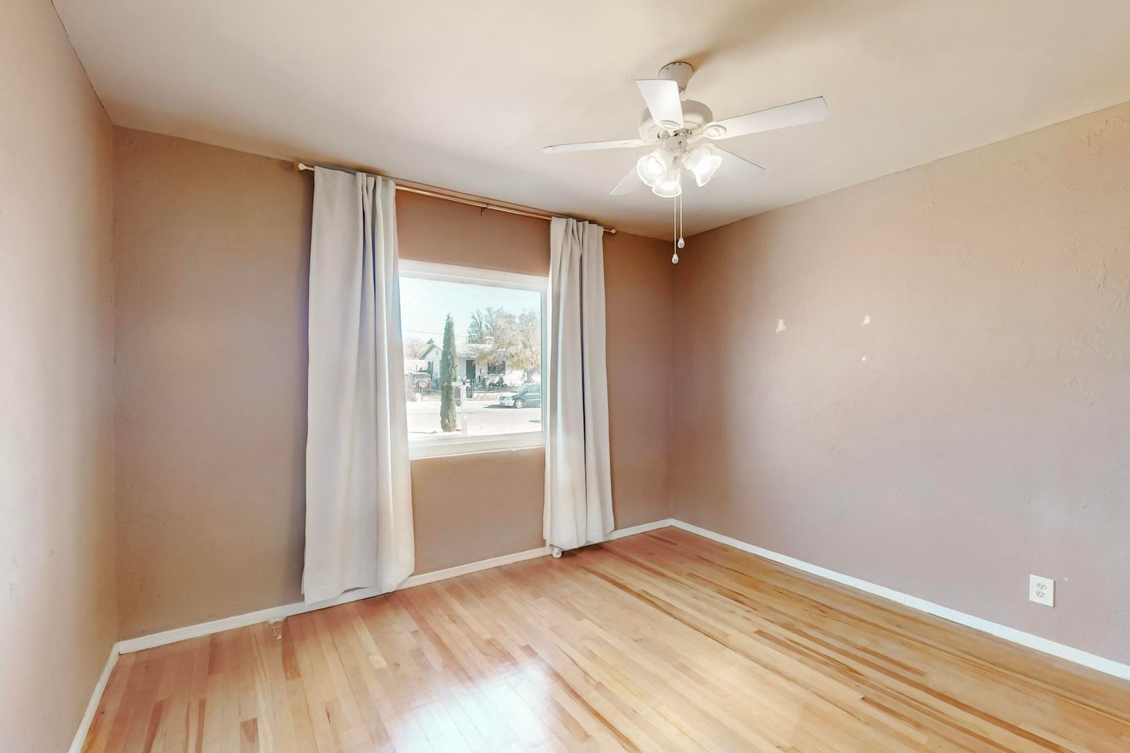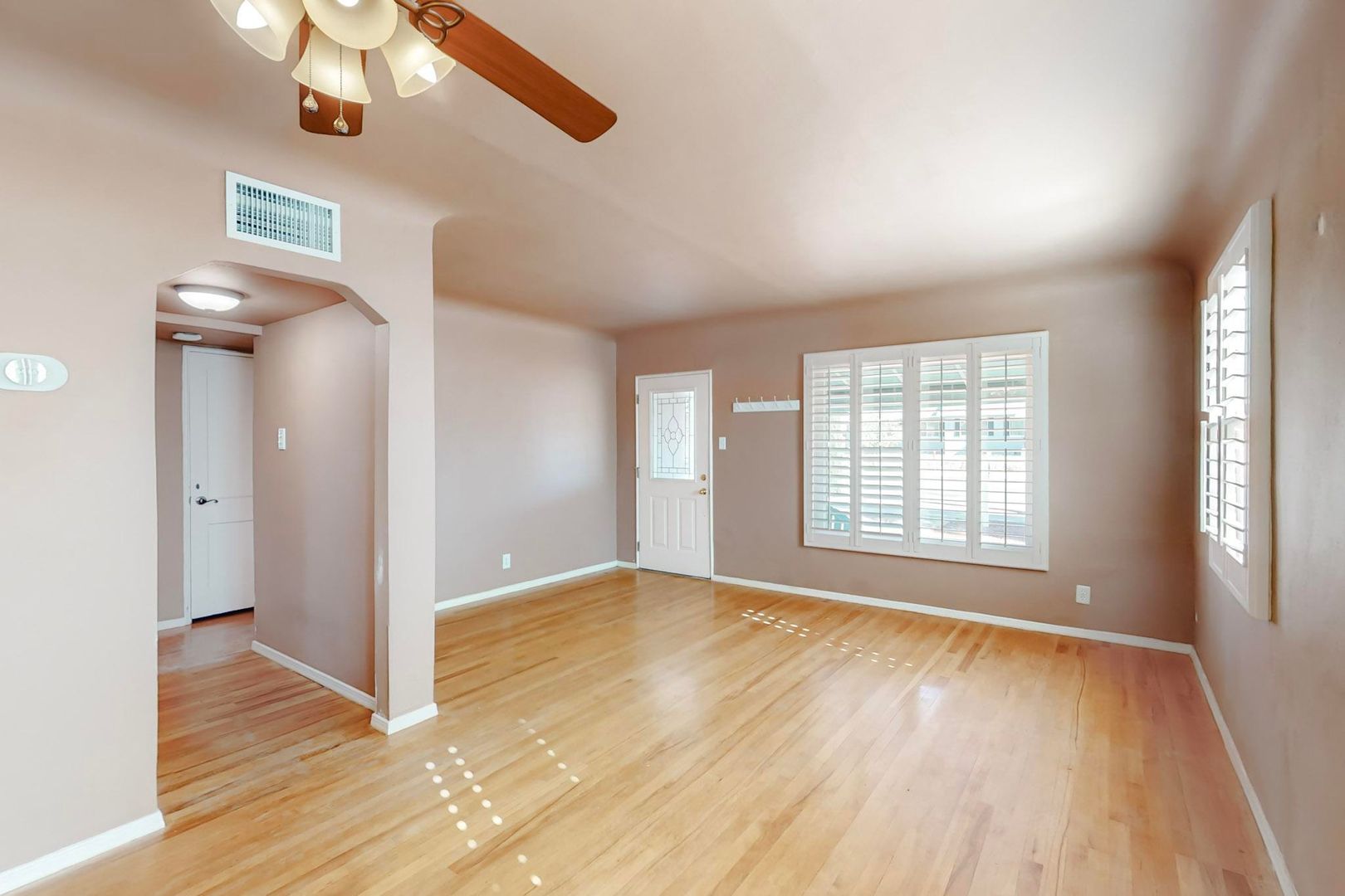 Welcome to this charming 3 bedroom, 2 bath home located in Central El Paso! This cozy house features hardwood floors, shutters, and ceiling fans throughout. The kitchen boasts stainless steel appliances, perfect for preparing meals. Enjoy the comfort of refrigerated A/C during the hot Texas summers. Step outside to the beautifully landscaped front and back yard, complete with a covered patio for outdoor entertaining. With a basement for extra storage space, this home has everything you need for comfortable living in a convenient location. Don't miss out on the opportunity to make this house your home!